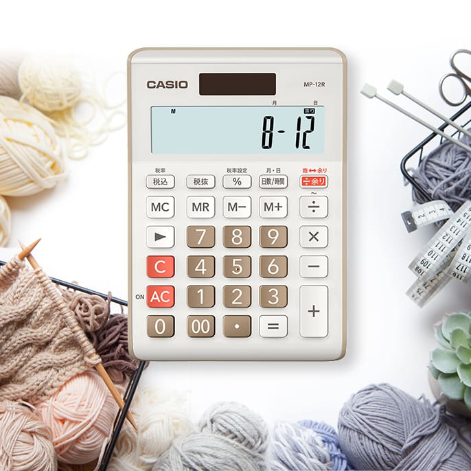 『余り計算電卓』MP-12Rが、編み物の”割り出し計算”にも大活躍!