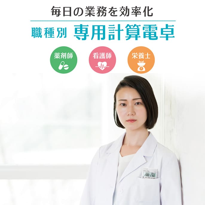 『余り計算電卓』MP-12Rが、調剤業務のヒヤリハットを70%削減!
