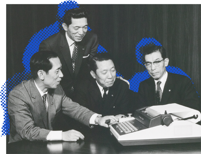 以降、四兄弟はそれぞれの優れた個性を持ち寄り、「創造 貢献」を実践しながら事業を発展させてきました。1965年に発売された初のメモリー付き電子式卓上計算機「001」から数えて、2025年で60年。その長い歴史を振り返ります。