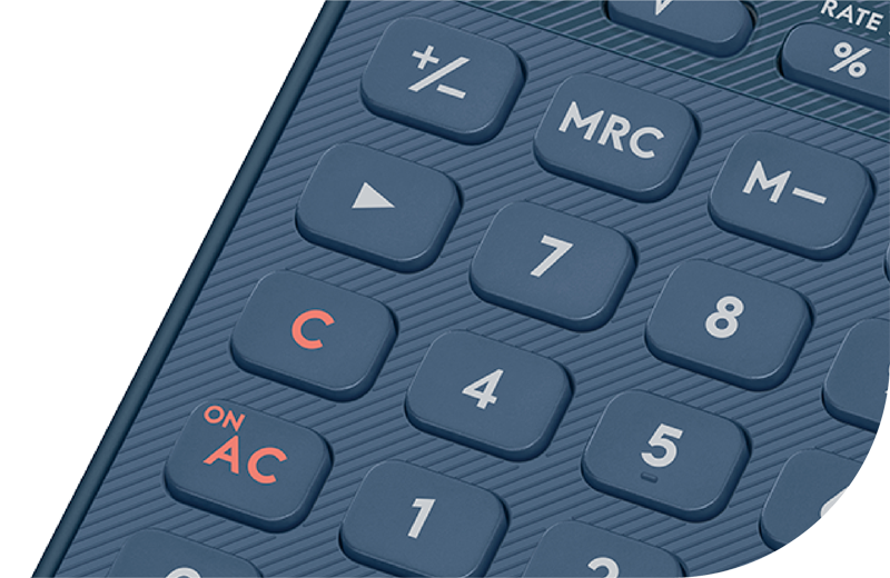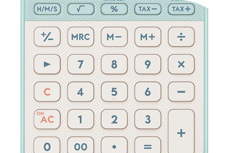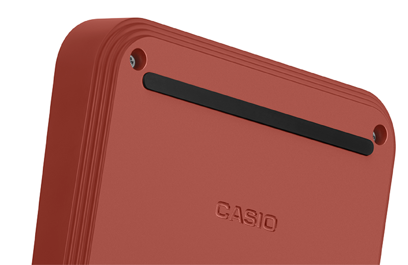 数字キーの周囲はエンボス、上部キーエリアはプリントで斜線パターンをデザイン。細かい部分にもこだわっています。