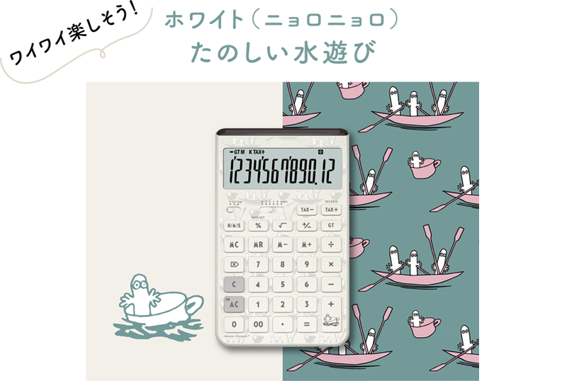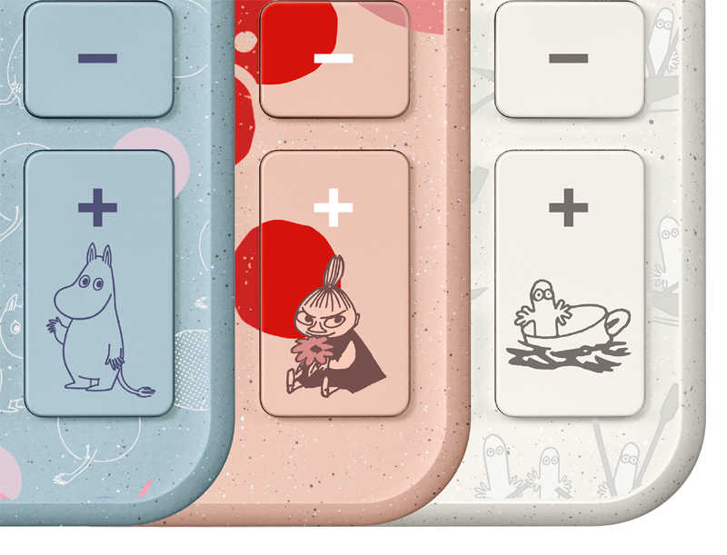 デザイン電卓Comfyとムーミンがコラボレーション。ムーミン⾕の仲間たちが、⼼地よさを追求したComfyのデザインに彩りを添えました。計算する毎⽇に、ほっとする時間を!