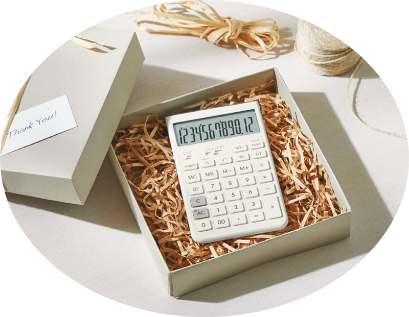 キーの打ちやすさ、液晶の⾒やすさなど、デザイン性だけにとどまらない電卓メーカーのこだわりが随所に。