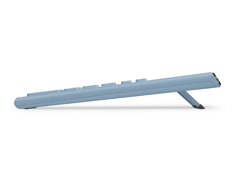 座ったときに打ちやすいように8度の⾓度がつけられる開閉式スタンド付き。閉じれば本体は1枚の板みたいになって、⽴ったまま使うときにも便利。持ち運ぶときもラクラク。