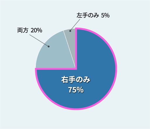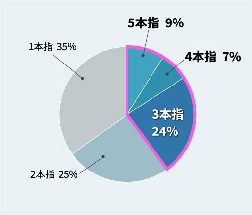 電卓使用者が、専用機としての電卓に何を求めているのか。調査によると、75%の方が電卓購入時に「打ちやすさ」を気にしていました。そこで、割合の高い「右手のみで操作する」人、中でも「3~5本の指を使う」ヘビーユーザーをターゲットに設定し、操作性をさらに高めた電卓を作ろうとプロジェクトがスタートしたのです。