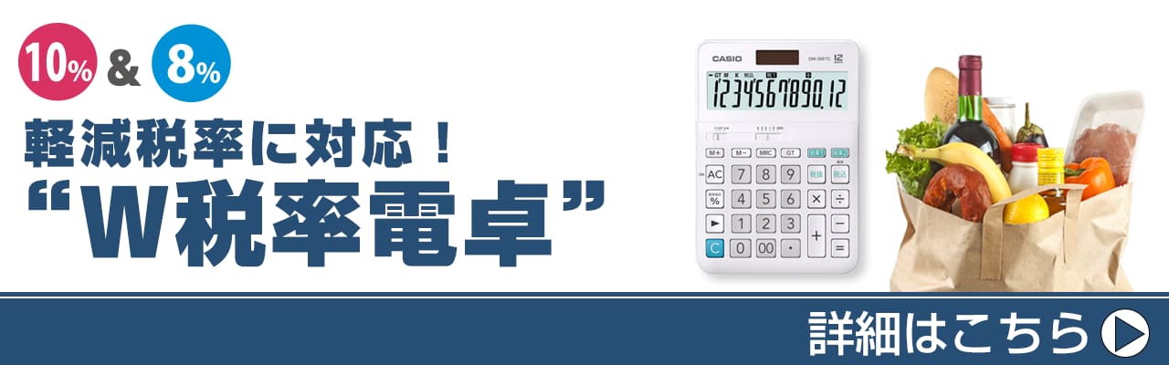 2つの税率計算を可能にする「W税率」機能を搭載。 優れた操作性と視認性のジャストタイプ。12桁表示。