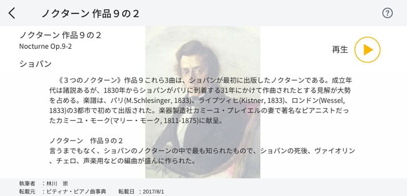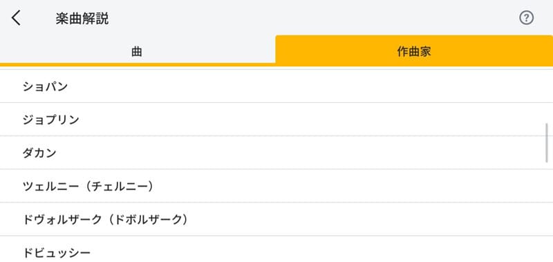 一部の収録曲や作曲家にまつわる解説や、作品が生まれた背景・歴史的ストーリーを確認できます。楽曲への理解が深まり、演奏しながらその曲の世界観により深くひたることができます。