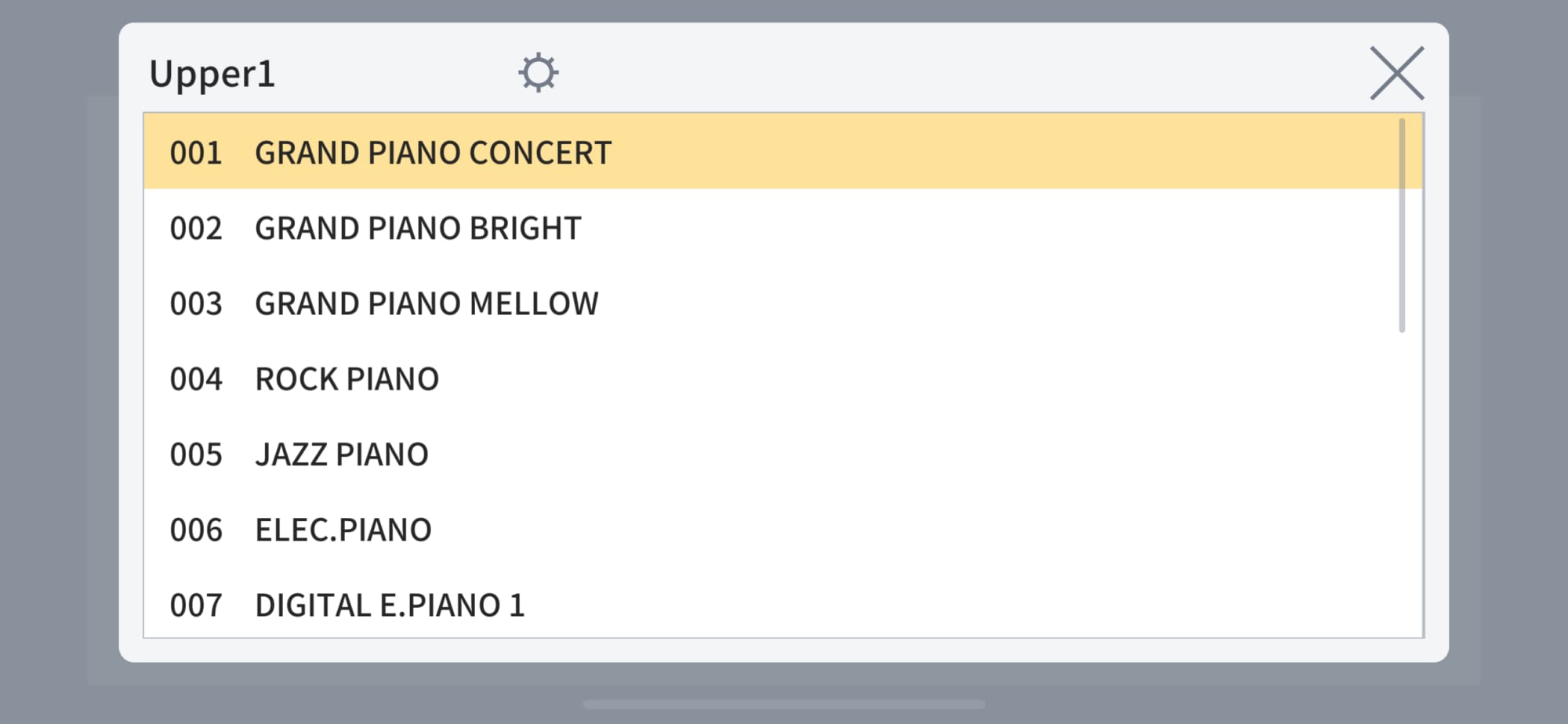 曲の雰囲気に合わせた音色の変更や内蔵曲の選曲などを、アプリ画面の一覧表示を見ながら行えます。