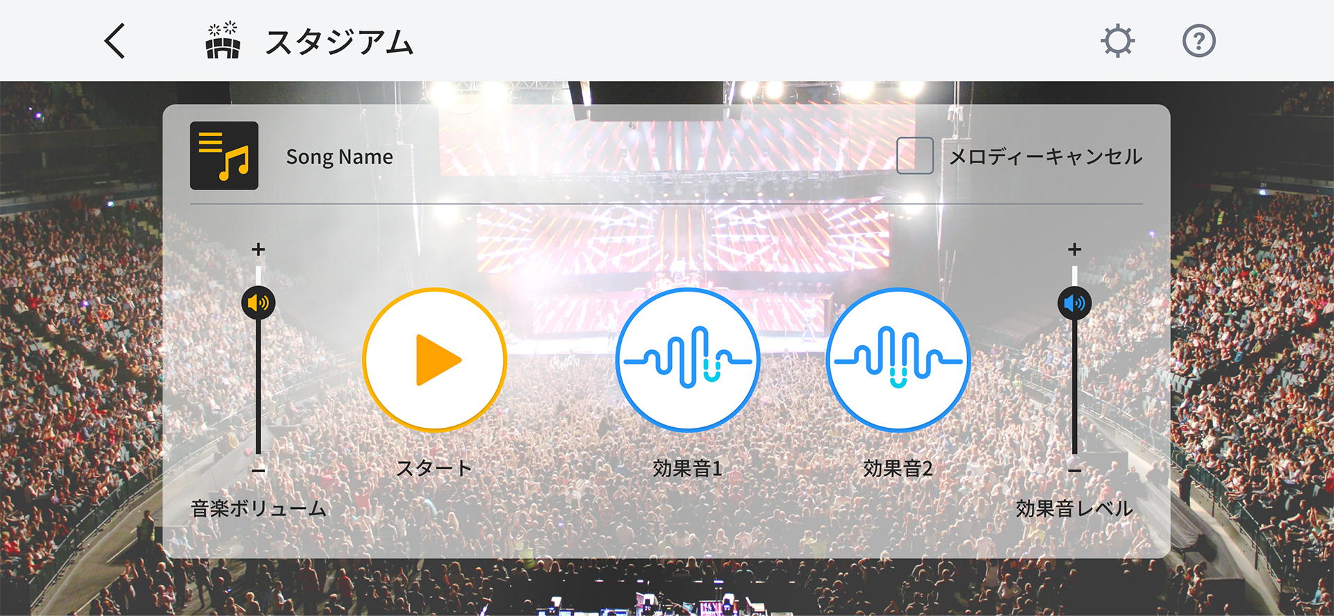 - 音楽配信サービスの曲に合わせて演奏する場合も、演奏を解析して拍手、歓声などの効果音が入ります。