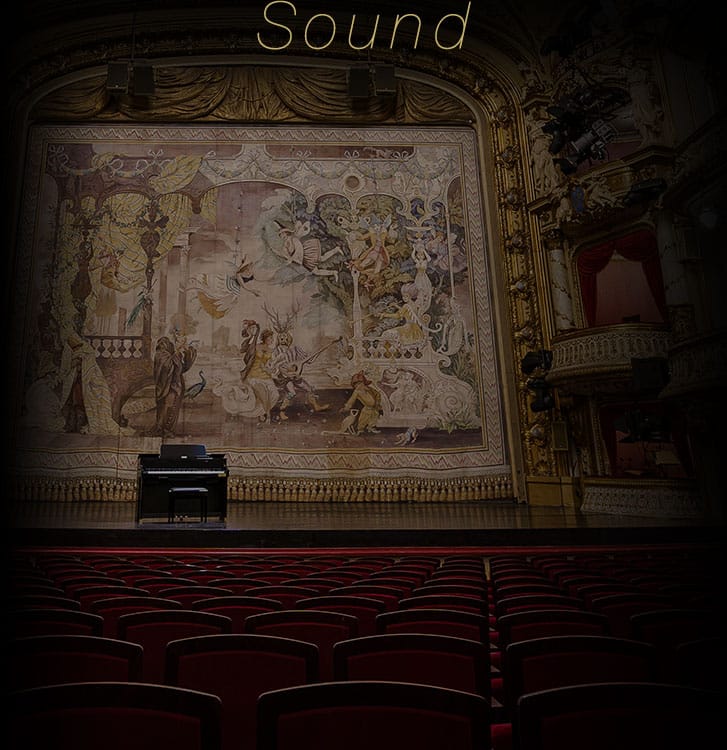 グランドピアノの構造や音の拡がり方を徹底的にシミュレート。響板から上下左右に音が拡がるグランドピアノの音響を得るために、上向きに2つ、下向きに2つのメインスピーカー、さらに演奏者に向けた2つのツイーターの、計6つのスピーカーを配置しています。中でもこだわったのが、下向きメインスピーカーの豊かな音量感。これにより、重厚感ある低音からきらびやかな中高音までをダイナミックに表現するCELVIANO Grand Hybridならではの自然な響きが完成しました。さらに、天板からの反射音や鍵盤機構を通って聴こえてくる音なども活かし、演奏者を包み込むような臨場感のある音響を実現しています。