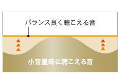 小音量時は低音と高音を補正して聴き取りやすくします。