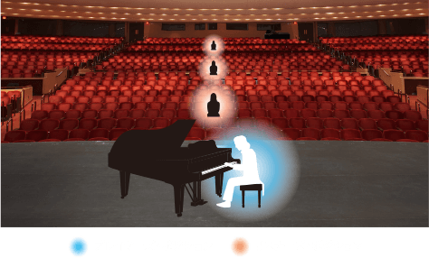 透明感のある端正な響きや、伸びやかで華やかな響きなど、世界的に有名なコンサートホールの音響特性をシミュレート。先進のデジタルシグナルプロセシング技術により、臨場感あふれるサウンドを堪能できるホールシミュレーターをさらに進化させて搭載しました。12種類ものホールシミュレーターを用意し、これらそれぞれを「プレイヤーズ・ポジション」と「リスナーズ・ポジション(3種)」、計4つのポジションで疑似体験することができます。例えば、大きなホールのステージで演奏している時、自分に音がどう聴こえるのか。また、その演奏が客席からはどう聴こえるのかも確かめることができます。