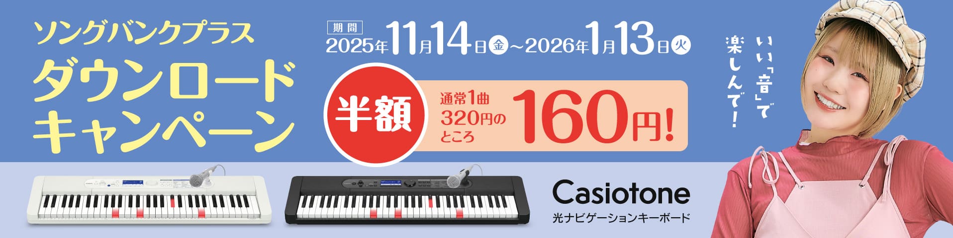 「ソングバンクプラス」では、洋楽・邦楽のヒット曲やピアノ曲など、多彩なジャンルの曲をラインアップ。画面表示は2つのモードがあります。