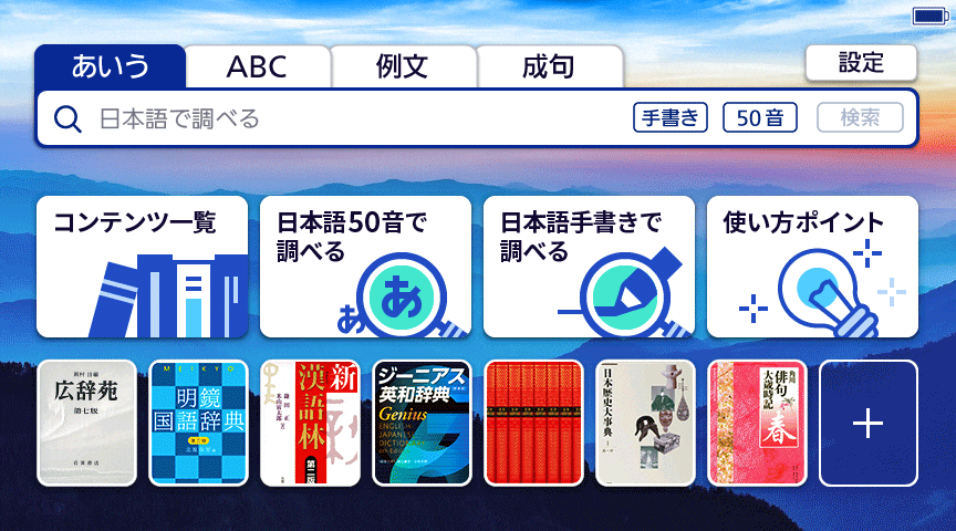 調べたい言葉をタッチペンで画面に直接書き込める。