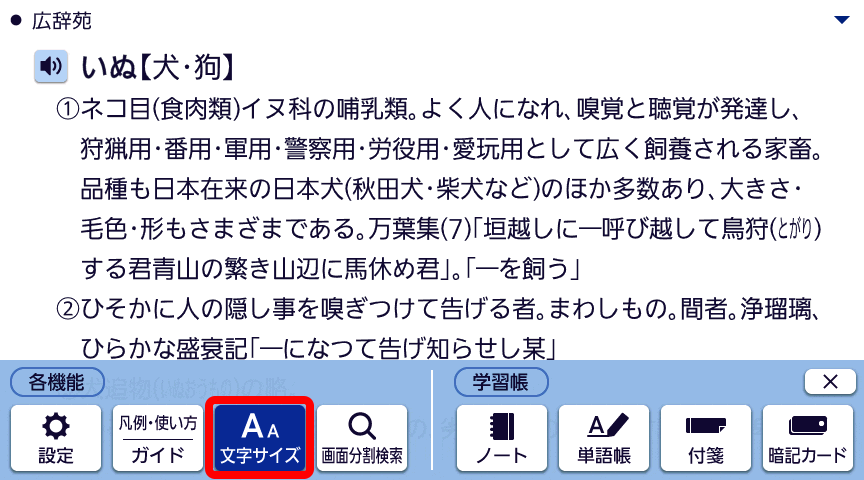 ※1 2023年11月~2024年5月 全国量販店の販売員に聞き取りした電子辞書の購入理由より具体的なコンテンツ名を回答した11件のうち6件が広辞苑と回答。当社調べ。