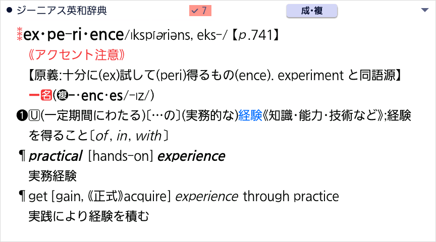 学習英和辞典(ジーニアス英和)での参照回数表示