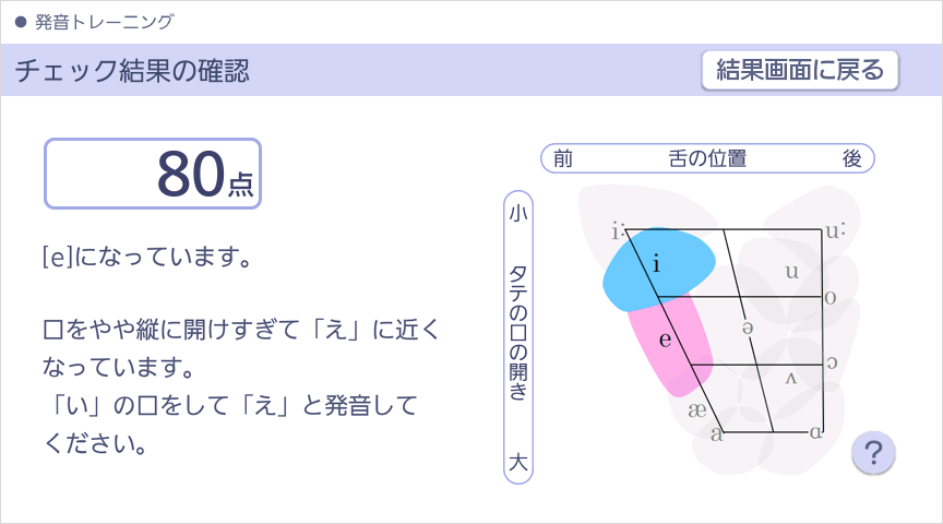 自分の発音を録音し、語頭の発音を採点。修正すべき箇所をアドバイスしてくれます。
