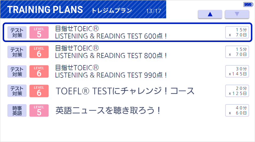 英語系学習コンテンツをカテゴリー分けして表示。数字やビジュアルで進捗状況がわかります。さらに、おすすめのコンテンツの組み合わせで学習することも。能率的な英語習得を可能にします。