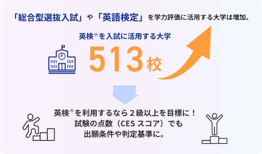 近年、英検®を入試の評価基準として活用する大学が増えています。早期から英検®対策を始めることで、受験の際に有利に働き、進学のチャンスを広げることができます。