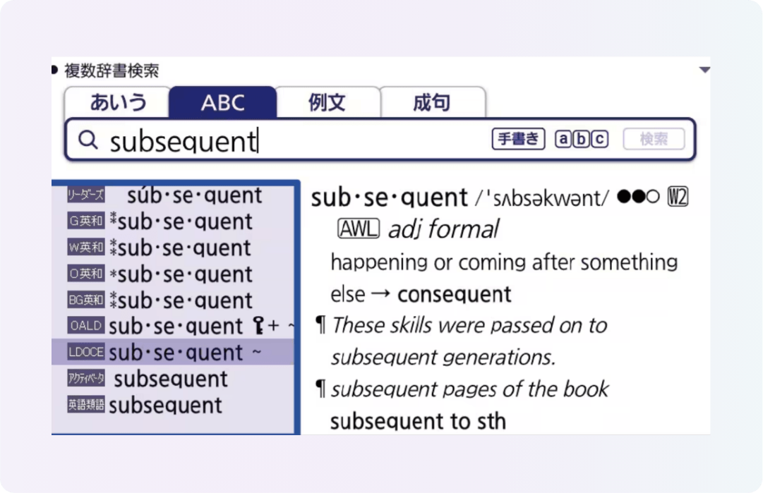 一度の入力で収録辞書全てから検索できる複数辞書検索で、正しい情報をすぐに確認できます。