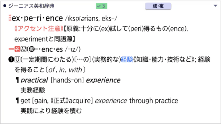 学習英和辞典(ジーニアス英和)での参照回数表示