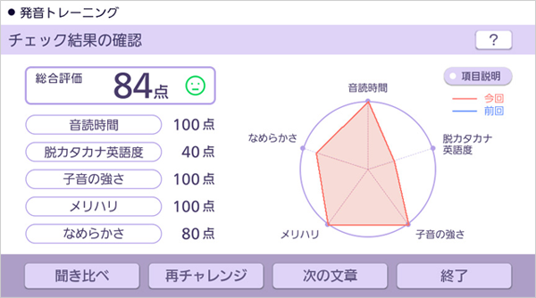 英語の授業が高度化する中、発音力の向上は必須。発音を録音し、採点してくれるから、一人で発音トレーニングができる。納得するまでとことん練習しよう。