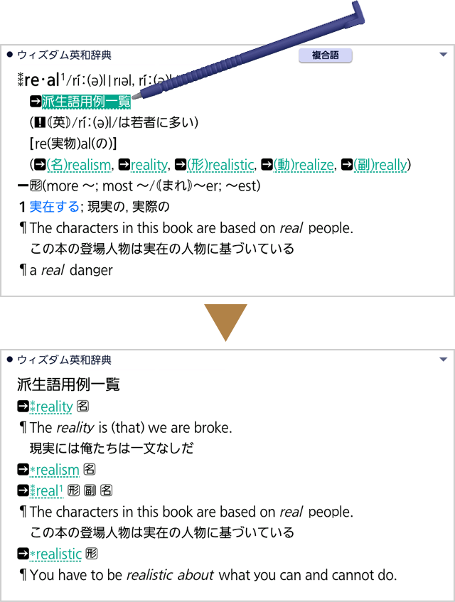 ウィズダムは派生語用例一覧も