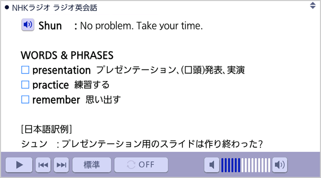 例文一覧の聞き流しや音声の個別再生に対応!