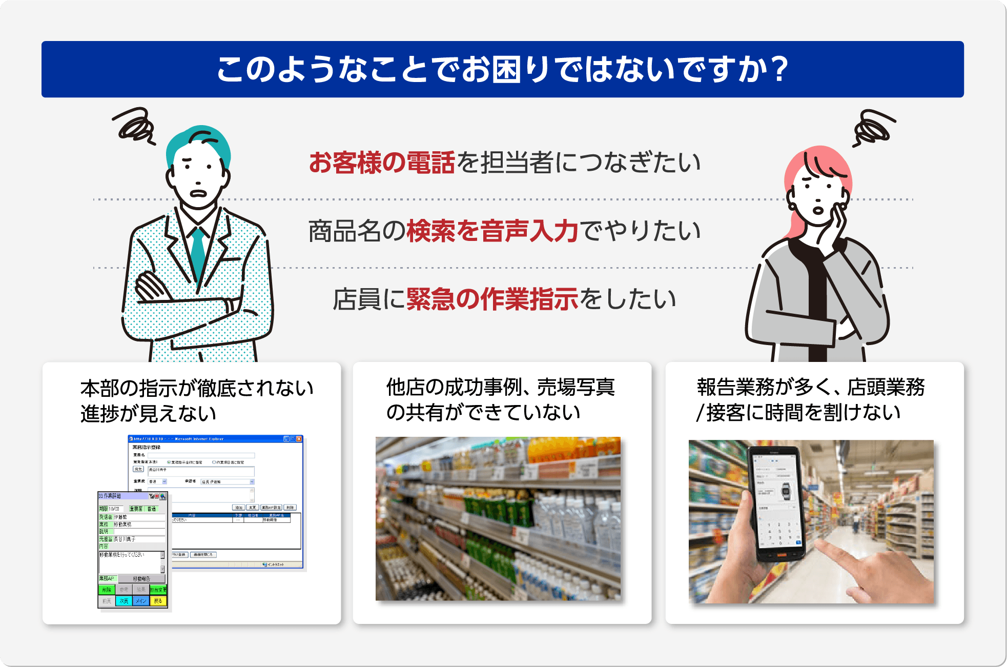 ④【流通業】グループウェアと音声ソリューションによる店舗業務改善