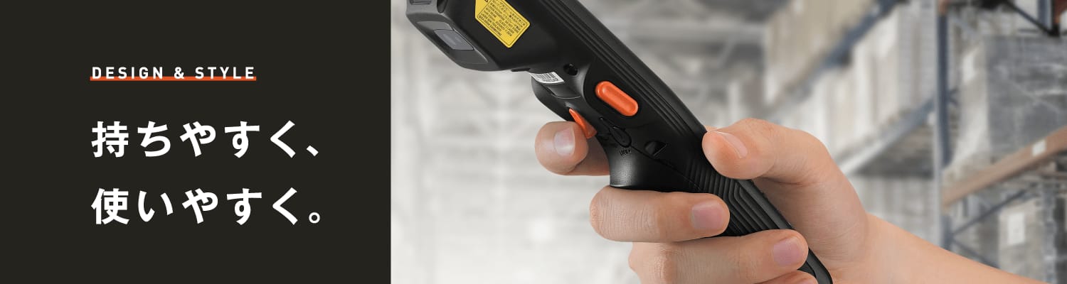 本体の縦横両軸にラウンド形状を施すことで、握りやすさと入力しやすさを同時に実現。操作の度に握り直すことなく、画面を見ながらスキャンでき、キー入力時にもスムーズな指の動きを実現します。