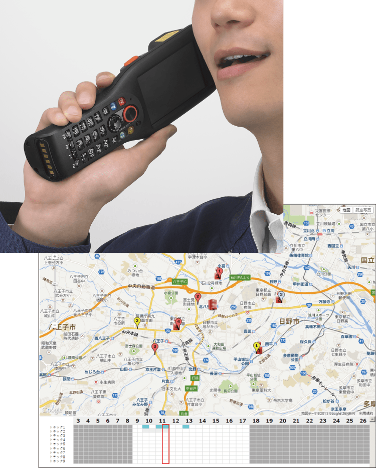 高速データ通信と音声通話に対応したWANを搭載し、屋外でのリアルタイム通信を実現。GPS機能も搭載し、位置情報の取得も可能。業務支援端末として、誤配防止や配車管理など、幅広い用途にお応えします。