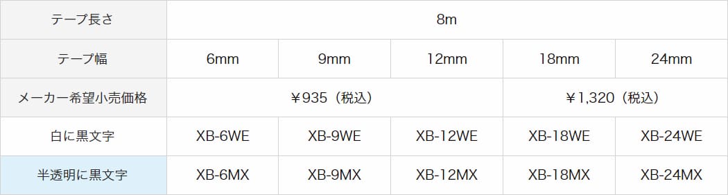 テープ幅は6 / 9 / 12 / 18 / 24mm※の5種類からお選びいただけます。
