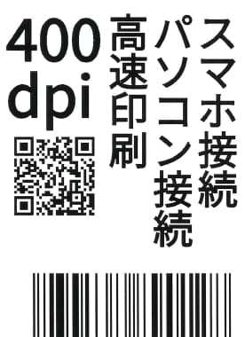 印字密度400dpiで、細かい文字やロゴもつぶれずに、くっきりキレイに印刷ができます。