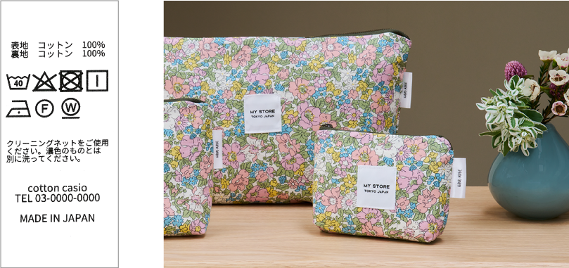 「洗濯タグ」や「ブランドタグ」も自分でできる布タグテープに対応。ハンドメイド製品の販売に活躍します。