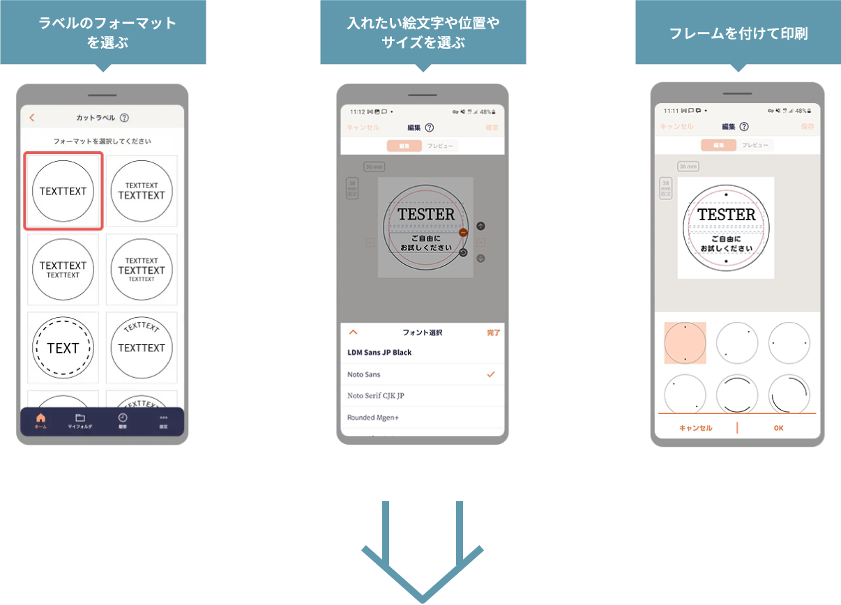 あらかじめ丸型にカットされたラベルに印刷できます。