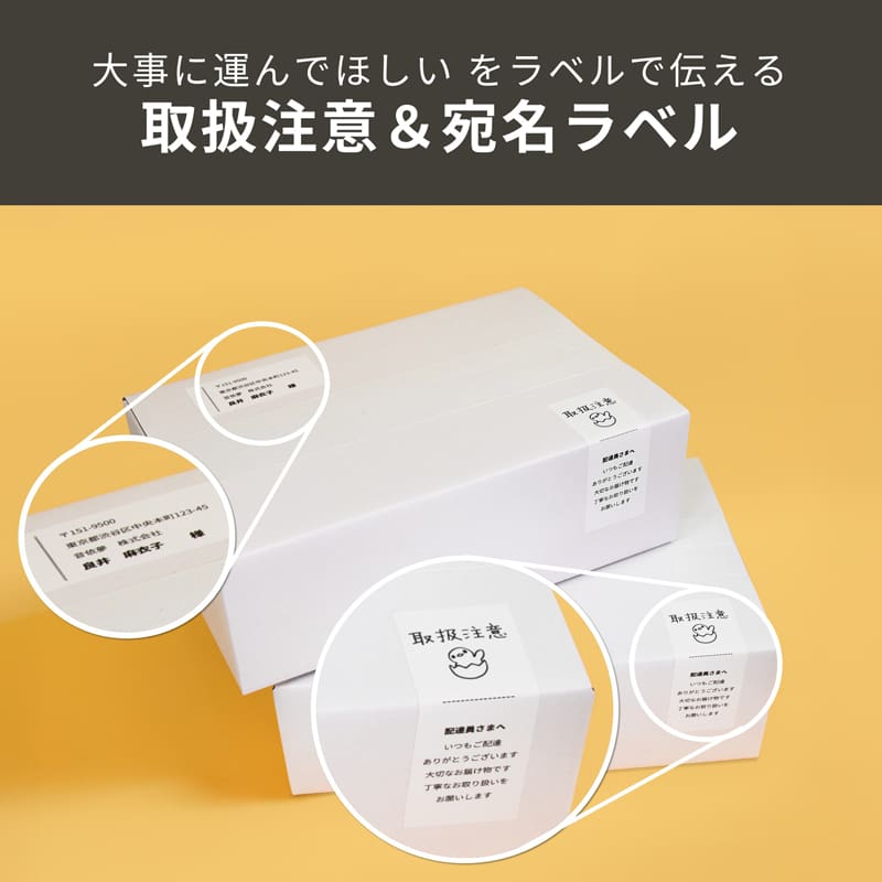 Thank youラベルや取扱注意・宛名ラベルなどに便利です。
