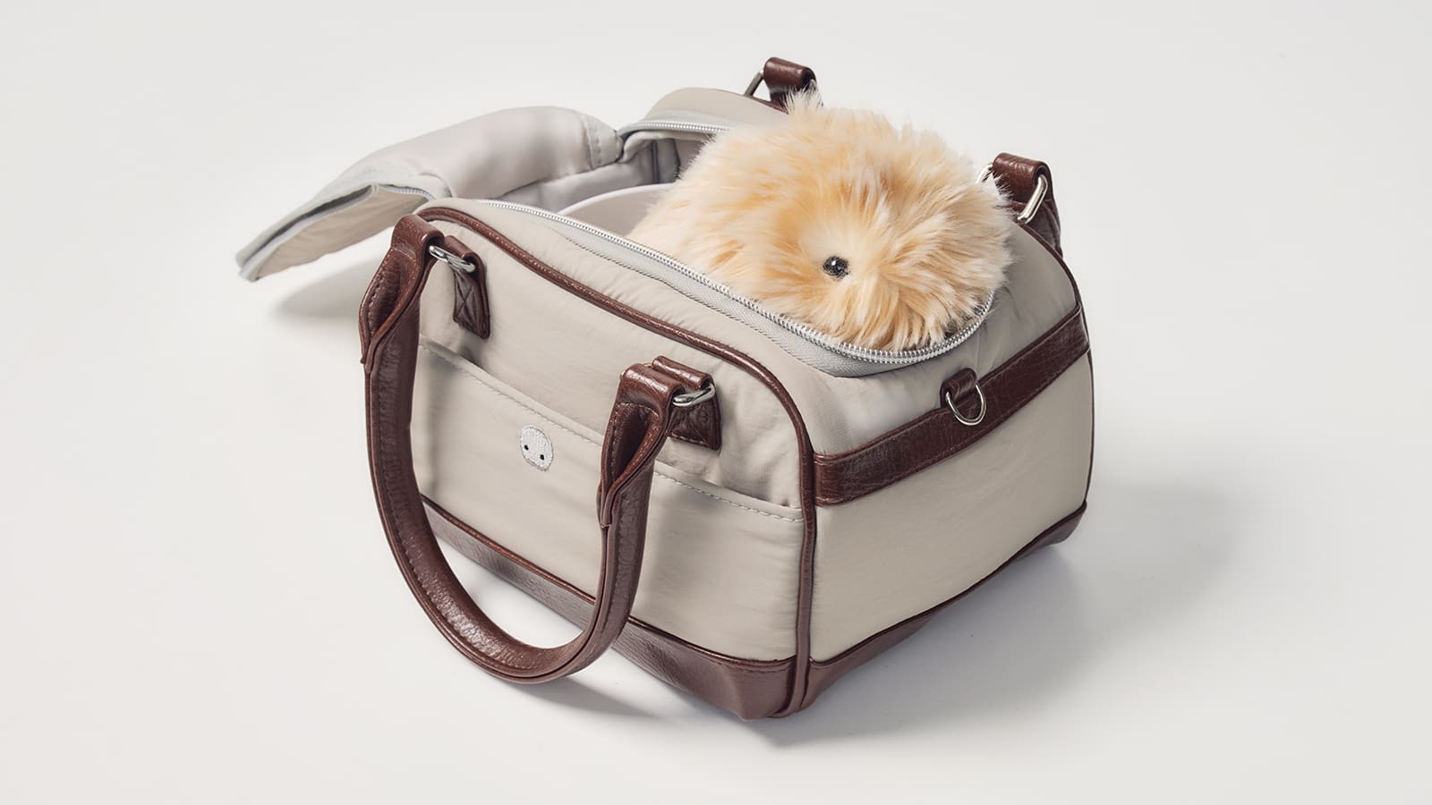 Moflinに"ちょうどサイズ"の専用おでかけバッグ。 “Moflin“をコンパクトに持ち運べる専用バッグです。”Moflin”の本体だけでなく、MoflinハウスとACアダプターも収納できるサイズです。