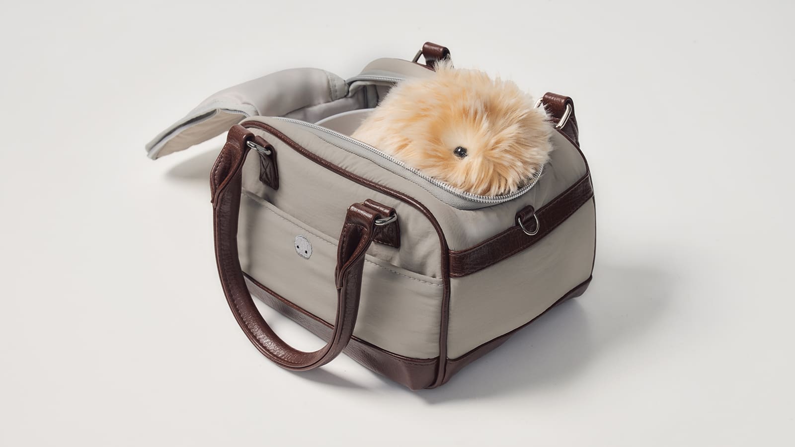Moflinに"ちょうどサイズ"の専用おでかけバッグ。 “Moflin“をコンパクトに持ち運べる専用バッグです。”Moflin”の本体だけでなく、MoflinハウスとACアダプターも収納できるサイズです。