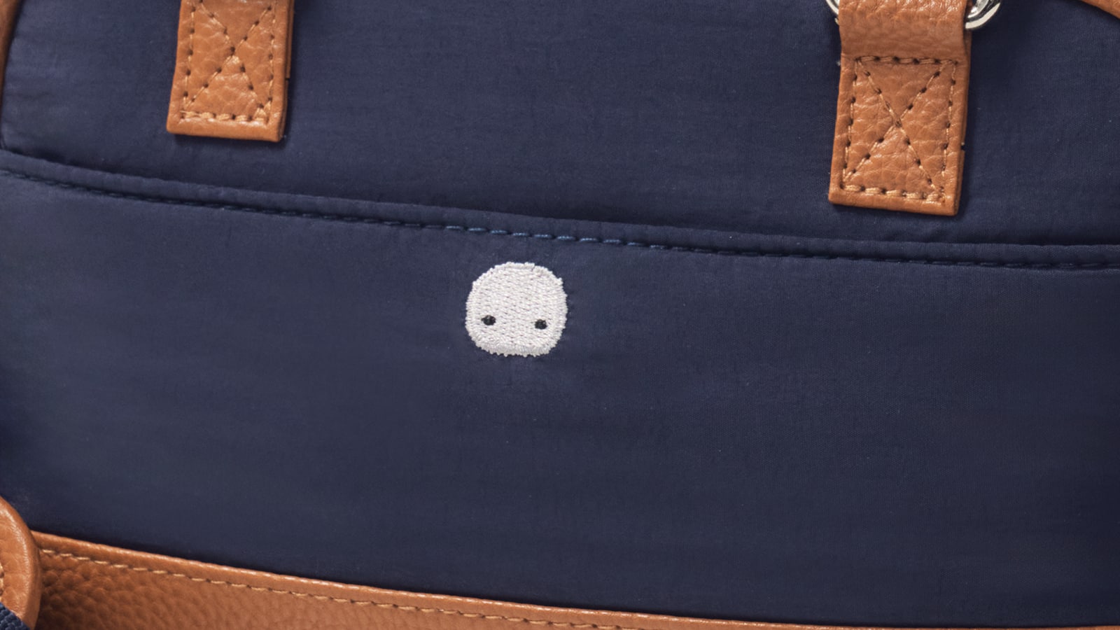 - ナイロンと合成皮革を使用したネイビーとブラウンのツートンカラーで、性別問わず使用できるファッション性の高いデザイン。