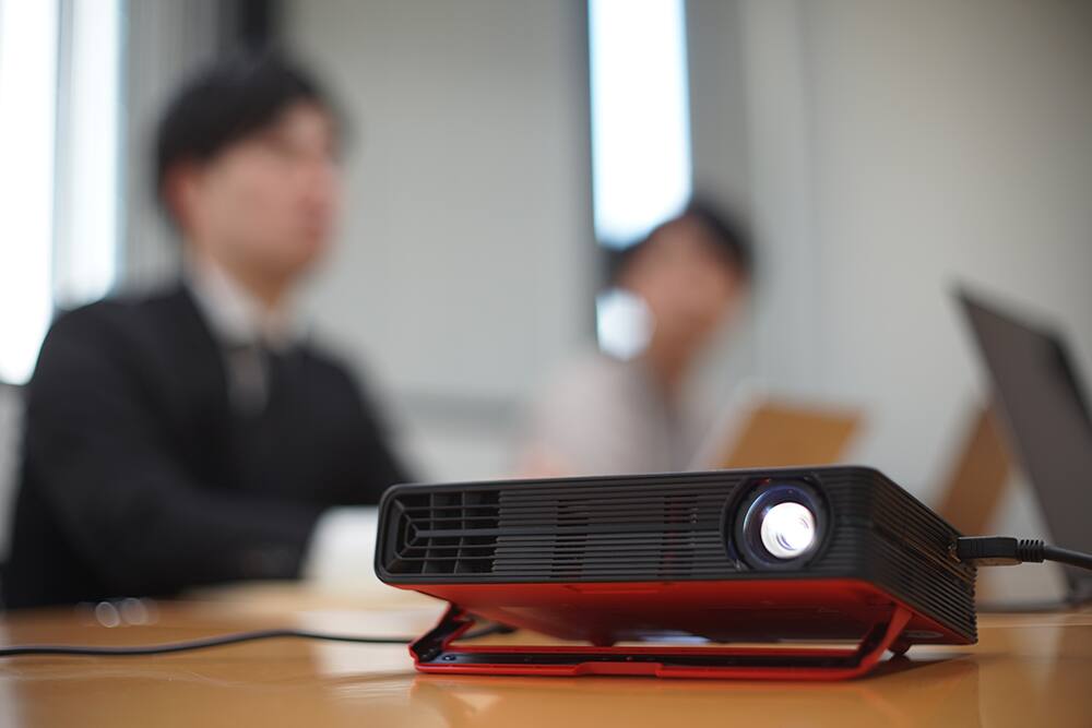 「これは本当にプロジェクターなのかと目を疑いました。スマートなデザインとも相まって、プレゼンの際も『これから何を見せてくれるのかという期待感を持った』とお客様からも好評でした。持ち運びが簡単でバッテリーでも動きますので、AC電源の場所を気にせずに使える便利さに大きな可能性を感じましたね。」(岩﨑氏)