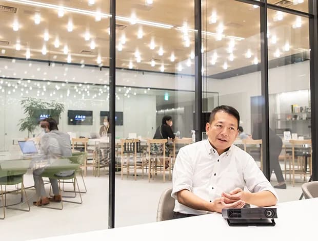 新しい事業を他社と産み出す。そのために自らどんどん門を叩いていかなくてはならない、という決意のもと、大きなコワーキングスペースを備え、約80社の企業が参画するインキュベーションセンターARCHを、カシオが新しいビジネスモデルを共創するコネクティングハブと決めた牛山氏。旧来のオフィスとは異なるこのコワーキングスペースという環境において、FORESIGHT VIEWはプロジェクターとして、どのような効果的な使い方ができるのか、その可能性や評価についてお伺いしました。