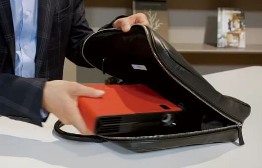 明るい場所、電源が無い場所でも打ち合わせを行うことができ、すぐに投映できてすぐに終わることもできるので、短時間の打ち合わせの場でも身軽に活用できる |