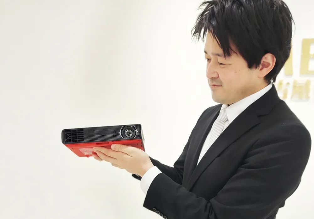「まず大きさ・軽さに大変驚きました。キャリーバッグに一式を詰めて一抱えするくらいのサイズ感が当たり前だと思っていましたから。バッテリーを充電しておけばコンセントの位置を気にする必要もありませんし、無線対応モデルを導入したので、HDMIのケーブルもいりません。利用時の見た目もスマートです。」(柴田氏)