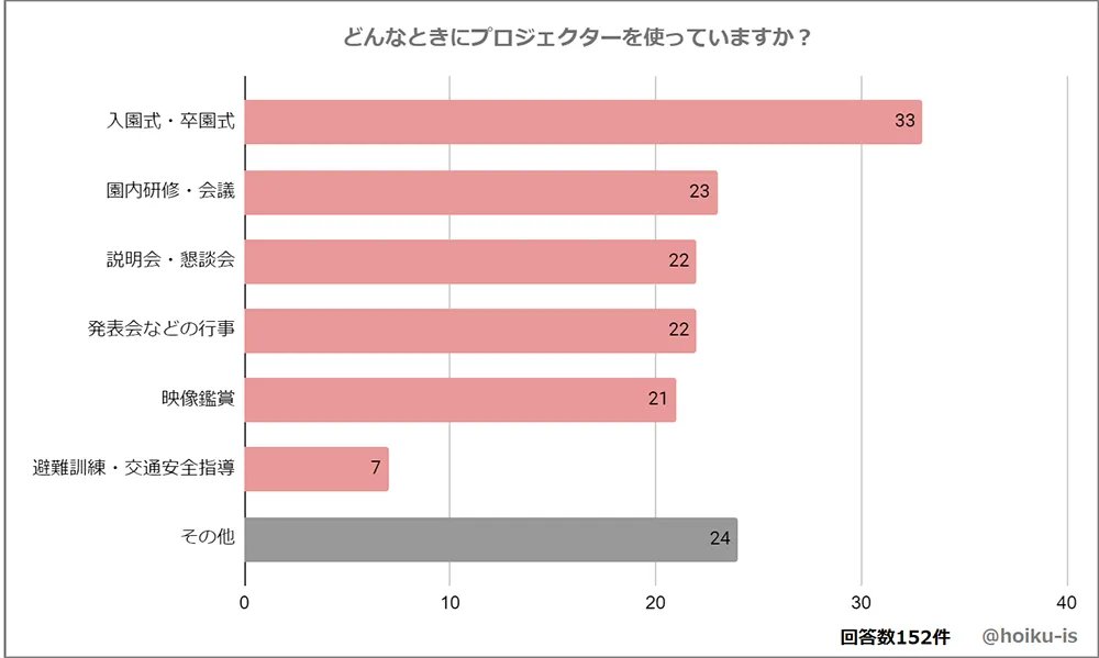 保育者向けWebメディア「ほいくis」のInstagram公式アカウントでのアンケート調査によると、「園でプロジェクターを使っている」という保育園や幼稚園は4割ほどという結果になっています。