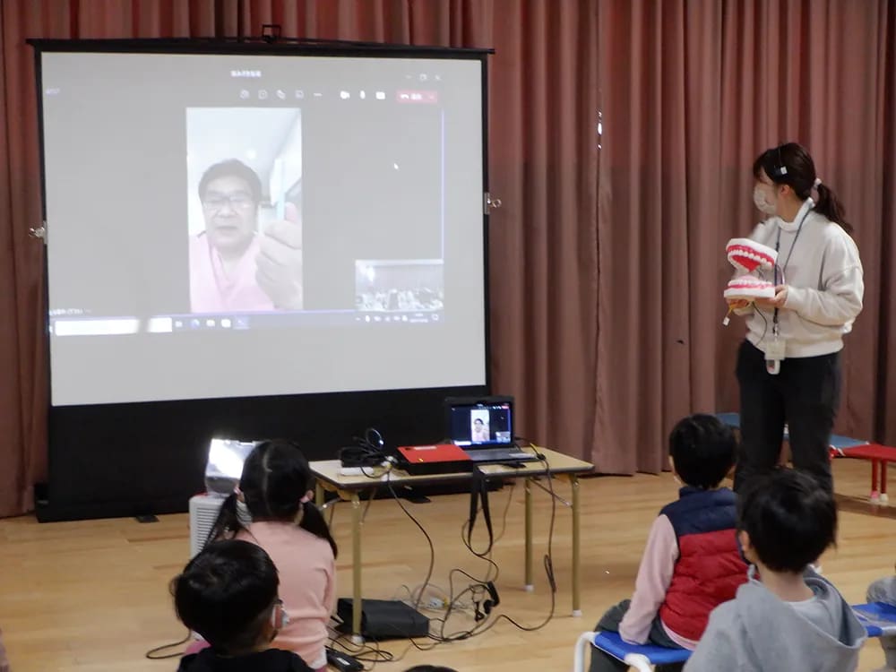 「なぜ歯は生え変わるんだろうとか、子どもたちからは素朴な疑問がたくさん出てきて、それに先生が答えてくださるというやりとりを行うことができたのは、もしかしたら大きい画面越しだからこそ、ちょうど映画館のように子供たちが話に集中できたという面があったのかもしれません。」(中野先生)