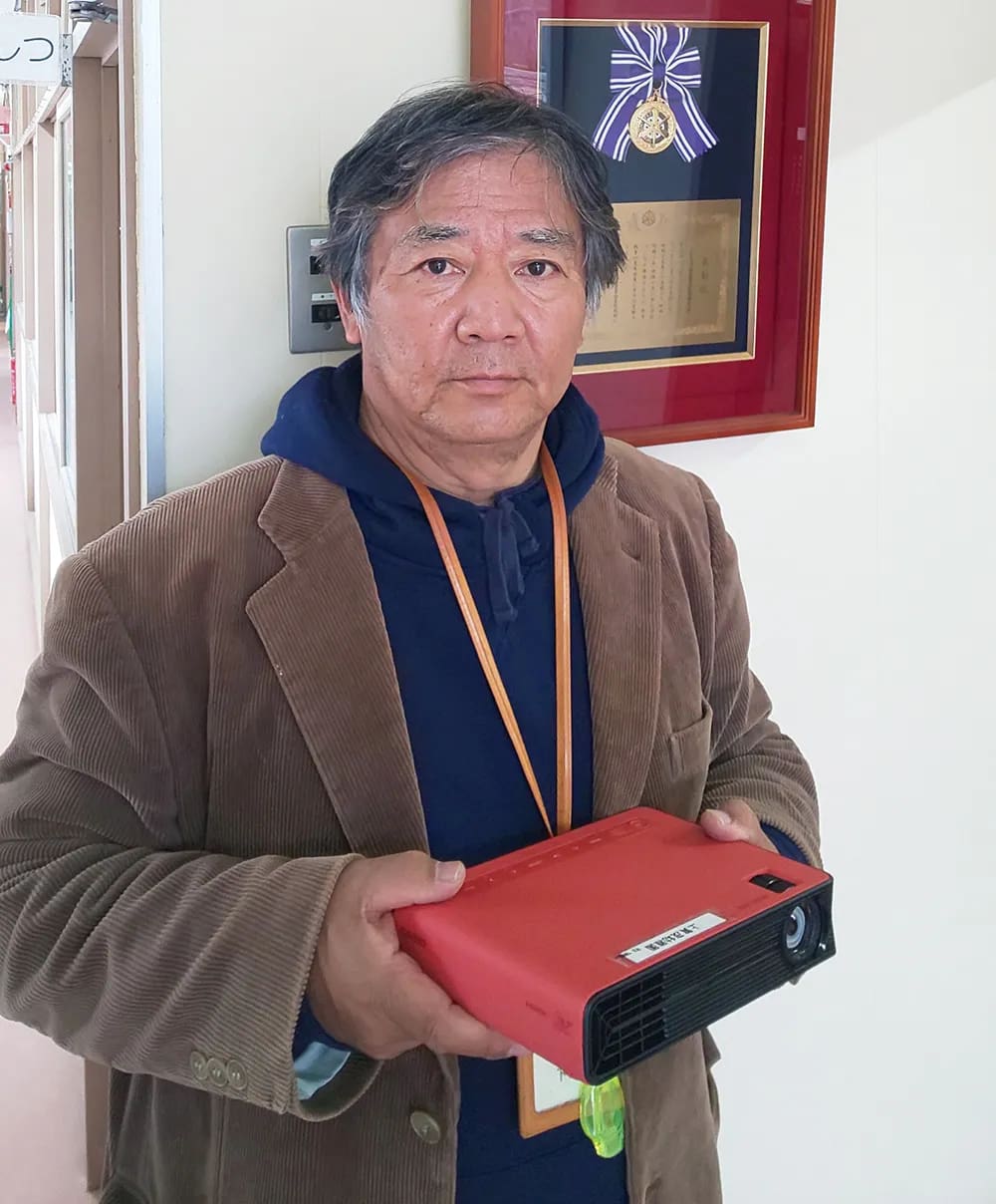 「カメラの三脚に取り付けできるので、置き場所に困ることなく、壁など投映する場所の自由度が上がりました。また、子どもの座っている目線の高さに簡単に合わせられるので、活用の幅が広がり、使用する機会も多くなりました。」(下村園長)