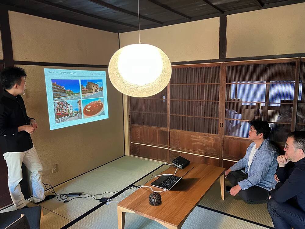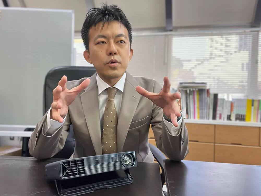 「地域活性化をテーマにお話しする場合には、個々人の知識量に差があるとどうしても画像や動画などのビジュアルを使って説明する方が理解度は上がります。今は皆さんパソコンを持っているので画面共有はできるのですが、自分のモニターに集中されると内職とかしちゃったりするので、プロジェクターで投映した画面を見ているほうが目線を合わせやすく、場に一体感が出ます。私のほうは手元のパソコンと、プロジェクターの画面を用いてマルチディスプレイを使用している感じなので、ディスカッションもしやすくプレゼンは断然話しやすく感じますね。」