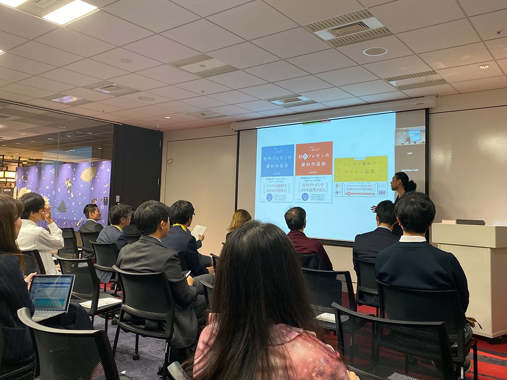 ソフトバンク、ベネッセ、ジャパネットホールディングス、松竹、Jリーグ、KDDI、日立システムズ、キヤノンなど年間200社を超える企業にて講演・研修を行う。著書「社内プレゼンの資料作成術」「社外プレゼンの資料作成術」「プレゼン資料のデザイン図鑑」(ダイヤモンド社)などは累計30万部を超える。(2021年3月時点)