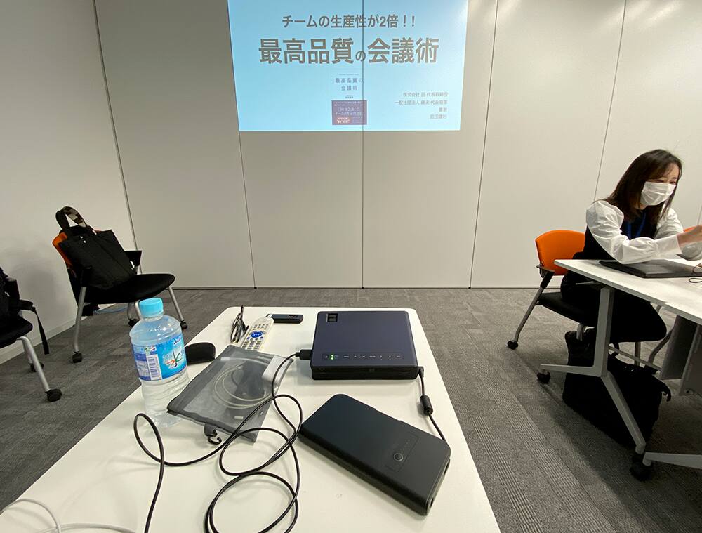 プロジェクターの輝度は大変重要と前田さん。輝度が低いと視認性を確保するため照明を落とさざるを得ませんが、参加者の手元が暗くなりメモが取りにくくなってしまいます。また、相手の表情も見えないので、前田さん自身もプレゼンしにくくなります。
