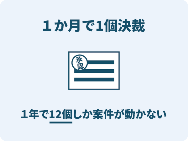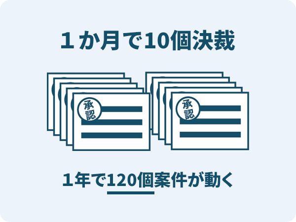 「会社は1年単位で業績と価値が決まります。売り上げを上げるために必要なのは、決裁者の意思決定と、その先にある新しいアクション。1か月で10個決裁が下りれば1年で120個の案件が動きます。」