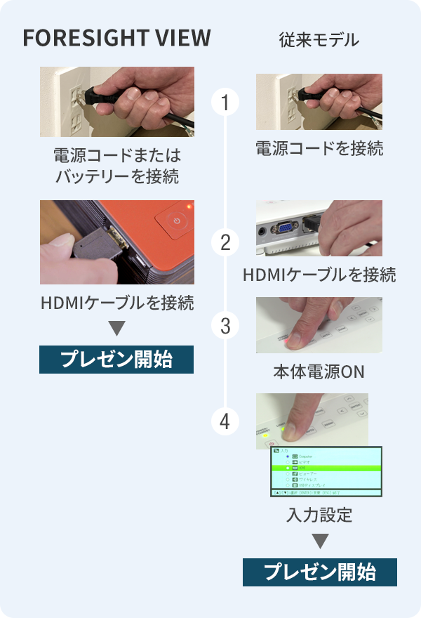 「FORESIGHT VIEWならケーブルを挿すなどの動作で起動がスタートし、5秒ほどで投映できるので準備に時間がかかりません。決裁者に好印象を与えられると思います。そういった積み重ねが結果にも影響するのです。」」